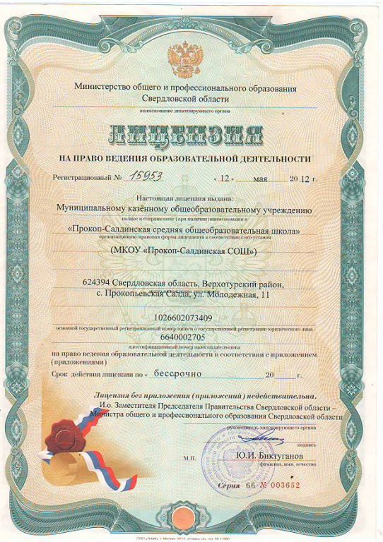 Адрес местонахождения образовательной организации* 624394, Свердловская обл, Верхотурский р-н, Прокопьевская Салда с, Молодежная ул, дом № 11 Кадастровый номер: 66:09:2501001:227
